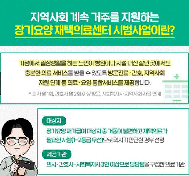 Àå±â¿ä¾çº¸Çè ¼ö±ÞÀÚÀÇ °¡Á¤À» ¹æ¹®ÇØ ÀǷἺñ½º¸¦ Á¦°øÇϰí ÇÊ¿äÇÑ Áö¿ª»çȸ µ¹º½¼ºñ½º µîÀ» ¿¬°èÇÏ´Â »ç¾÷À̸ç