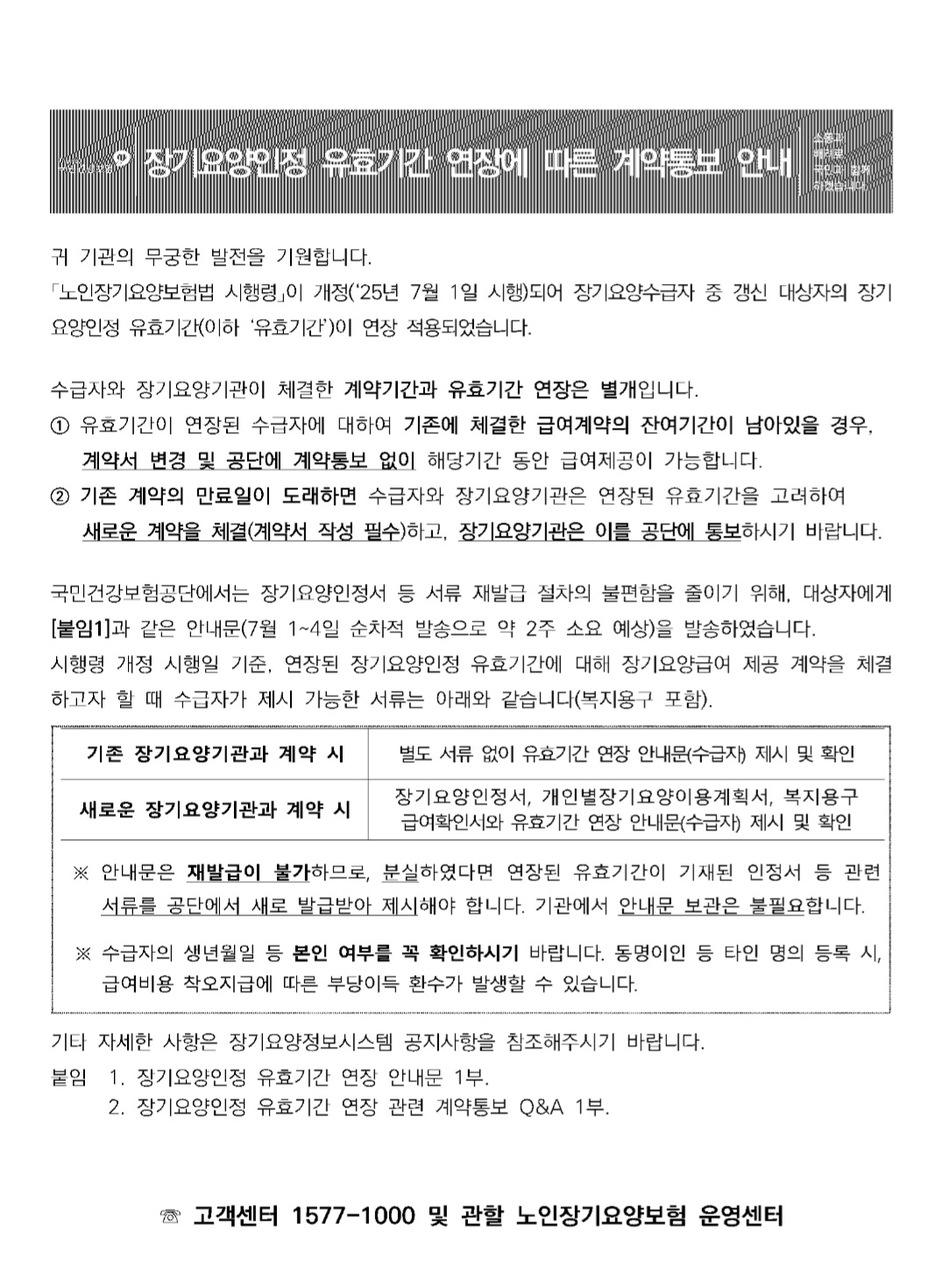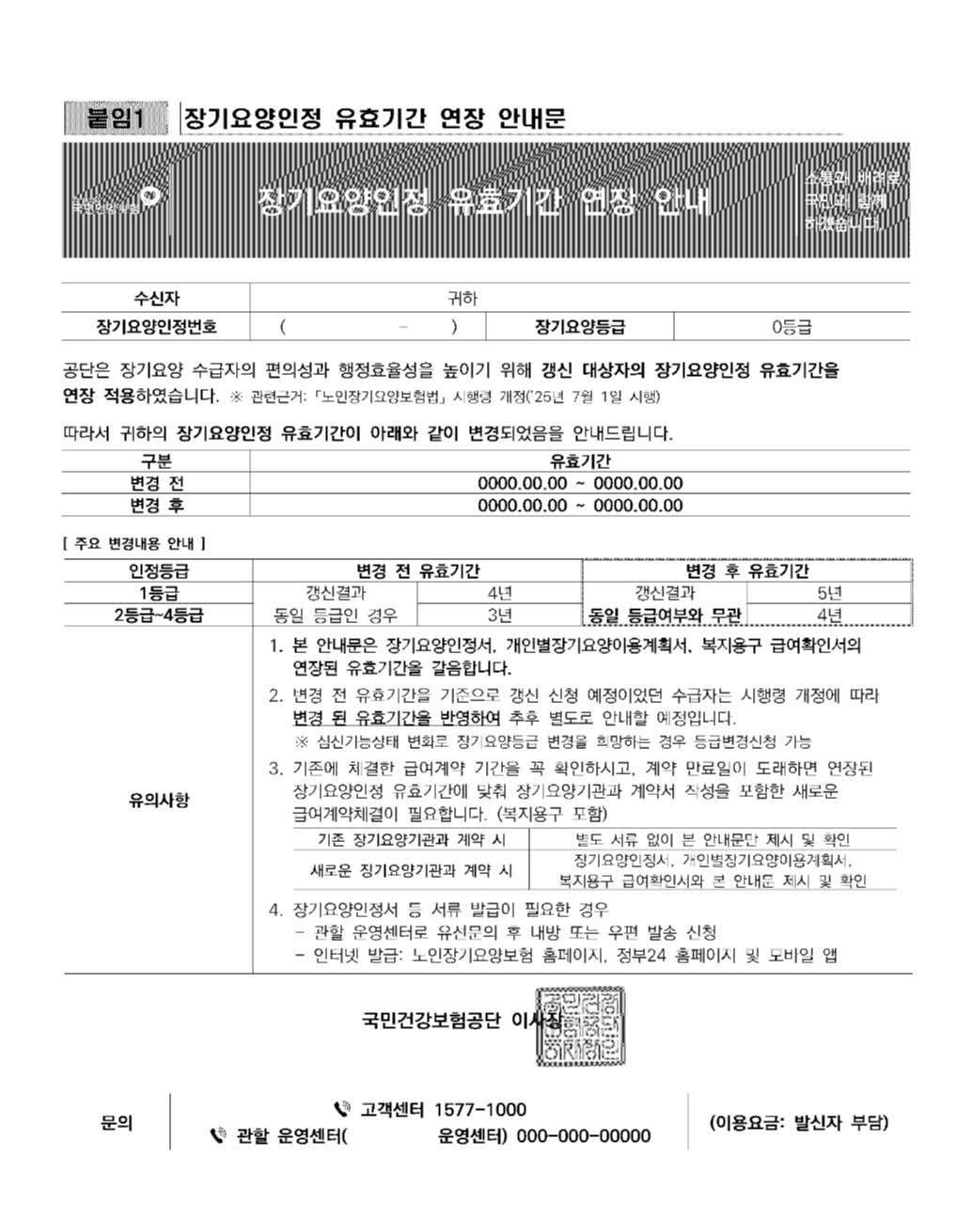 ³ëÀÎÀå±â¿ä¾çº¸Çè¹ý ½ÃÇà·ÉÀÌ °³Á¤µÇ¾î (2025³â 7¿ù 1ÀÏ ½ÃÇà) Àå±â¿ä¾ç ¼ö±ÞÀÚ Áß °»½Å ´ë»óÀÚÀÇ Àå±â¿ä¾çÀÎÁ¤ À¯È¿±â°£ÀÌ ¿¬Àå Àû¿ëµÇ¾ú½À´Ï´Ù